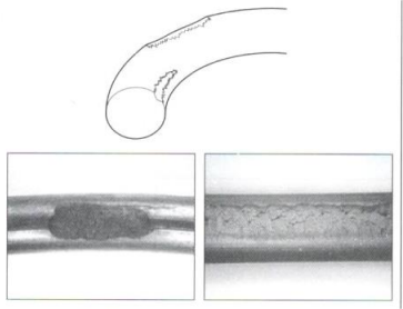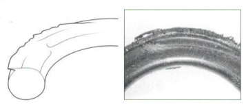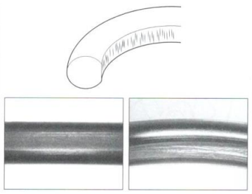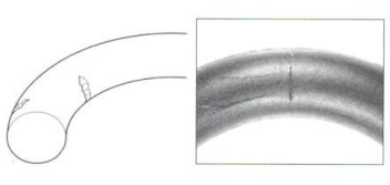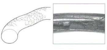 由于在伸长O形圈的状态下放置于空气中,因此受臭氧影响而使表面产生了龟裂。 |