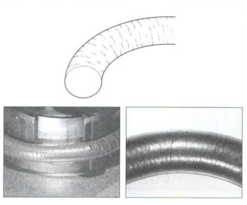 ①由于圆柱端面或轴端面的倒角不充分而面前装入。 ②与O形圈的截径相比,O形圈沟槽在超过规定值的较浅的状态下勉强进行安装。 ③安装时,孔、螺纹部、端部等缺损。 |