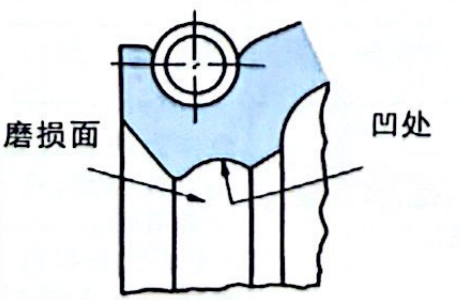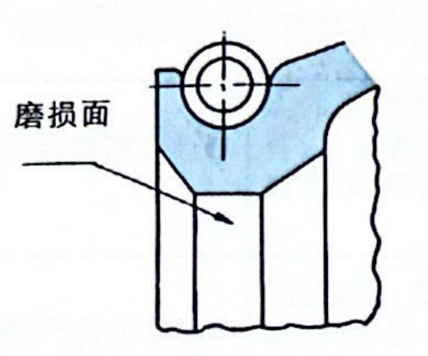 唇口端部磨损大,在磨损面上带有圆周方向的“条纹”。