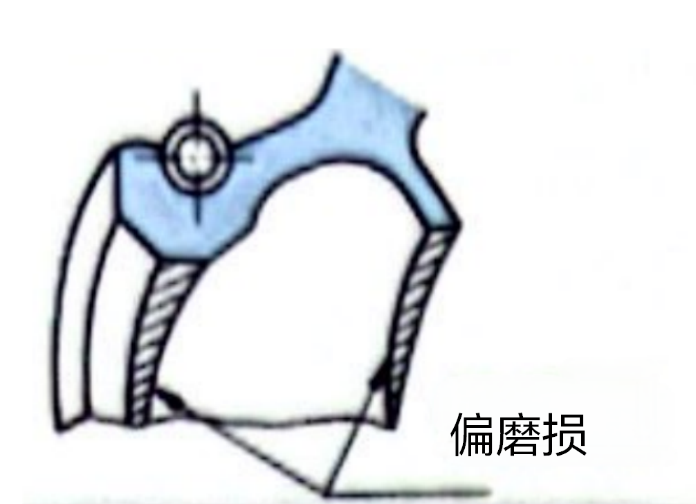唇口部偏磨损-倾斜安装 |