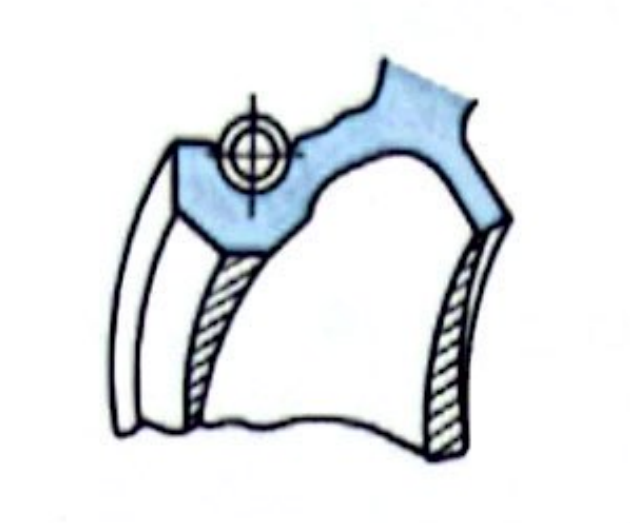 ·尘与灰砂在轴与油封上附着仍照样使用,在唇口处卡咬。 ·在唇口部与轴上有液态密封胶附着而仍照样使用,在唇口处卡咬。 ·在机器油漆时在唇口部与轴上有涂料附着而仍照样使用,在唇口处卡咬。  |