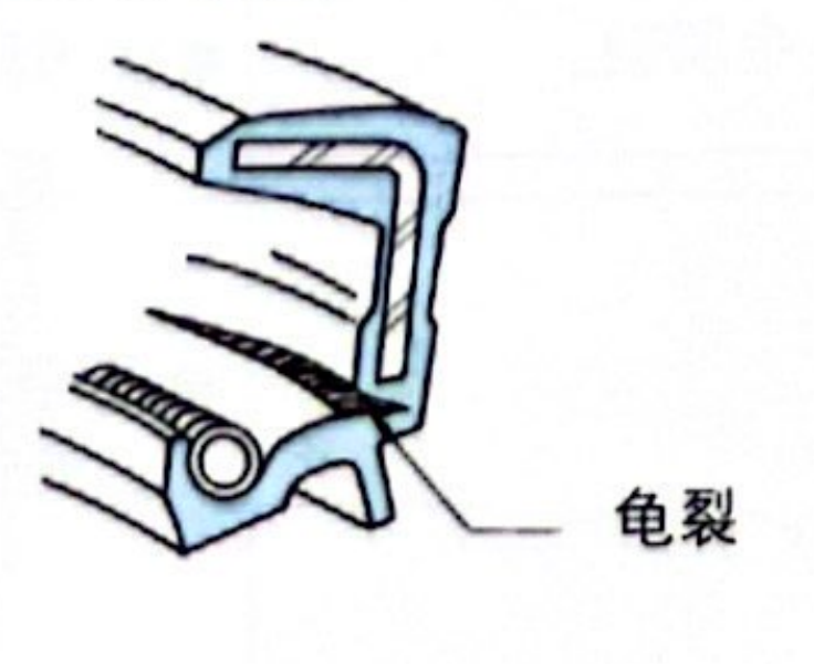 ·在装配后进行耐压试验(气密性试验)时,压力过大,油封腰部产生龟裂。 ·在运转时发生了比设计时予定压力高的压力,油封腰部产生龟裂。 |